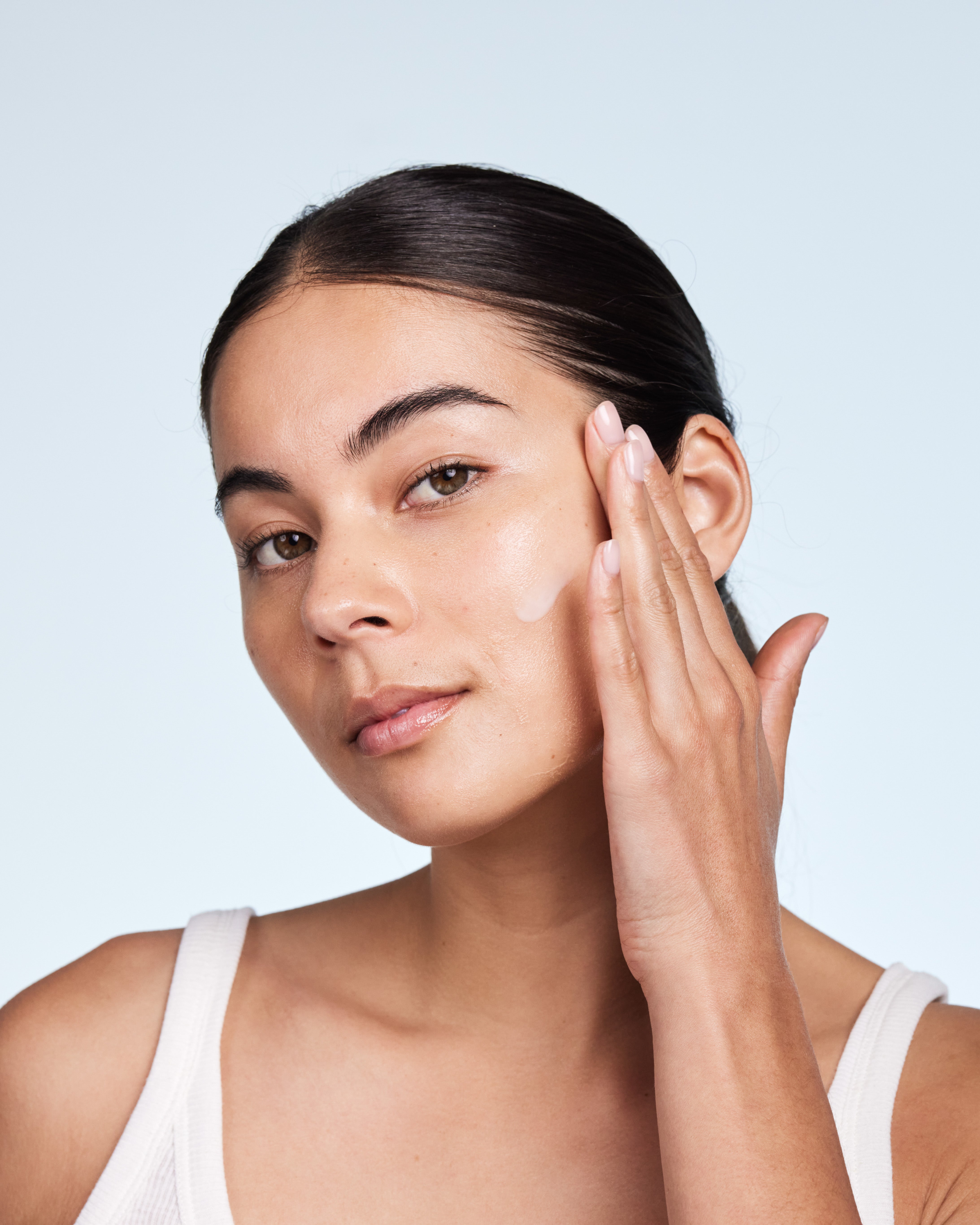 Any skin type can be dehydrated. If lifting the skin reveals faint horizontal lines or it feels tight post-cleansing, it may be lacking water.